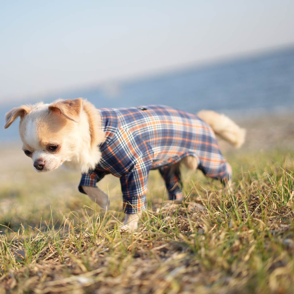 どんな毛色にも自然になじみ、コーディネートに取り入れやすいチェックデザインは一着あると重宝します。